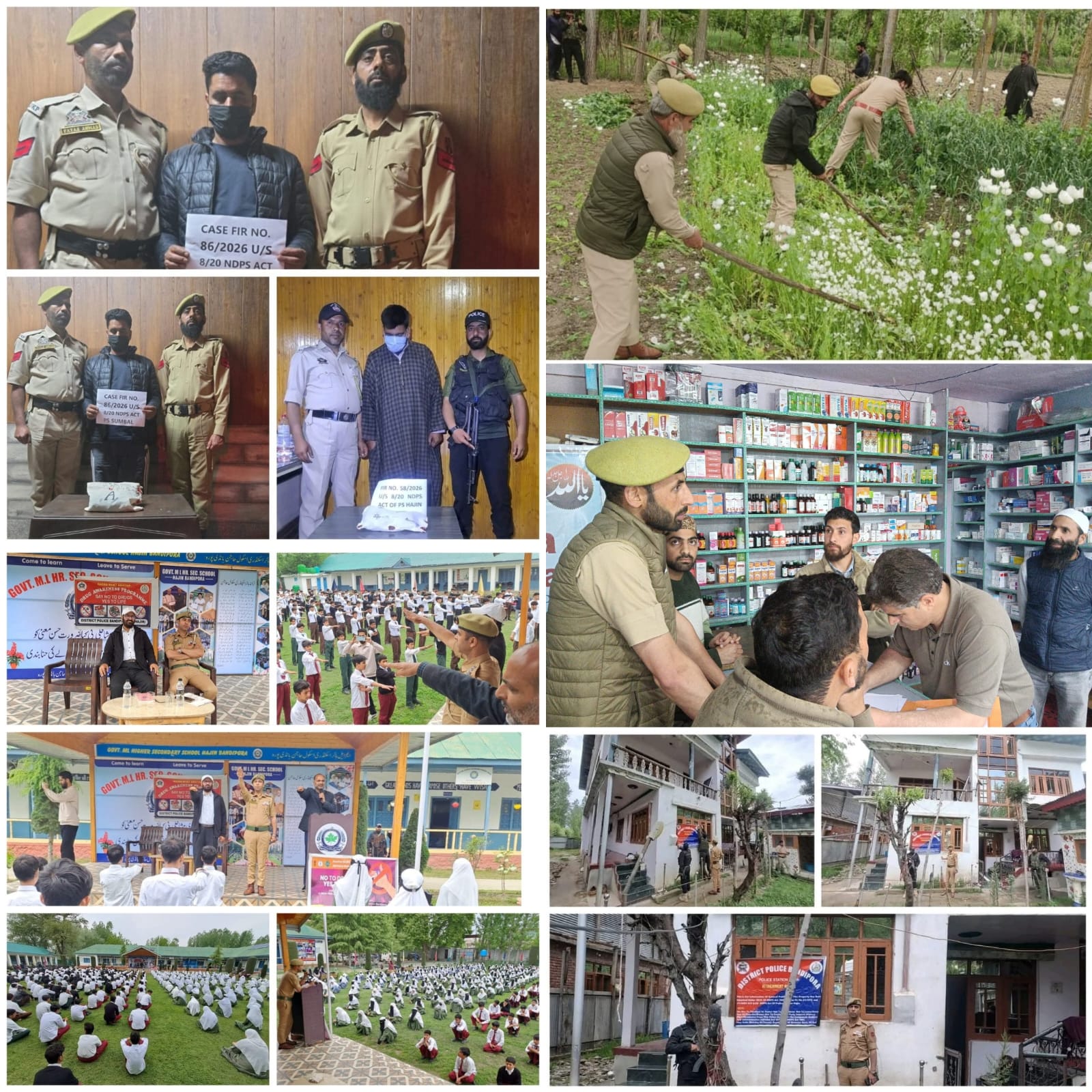 Meanwhile, as part of sustained anti-narcotics efforts, a joint team of Police, Revenue, Agriculture, and Excise Departments conducted a large-scale poppy destruction drive in Shilvat Sumbal. Illegally cultivated poppy crops were identified and destroyed on the spot, and FIR No. 88/2026 under Sections 8/18 of the NDPS Act has been registered to identify those involved.