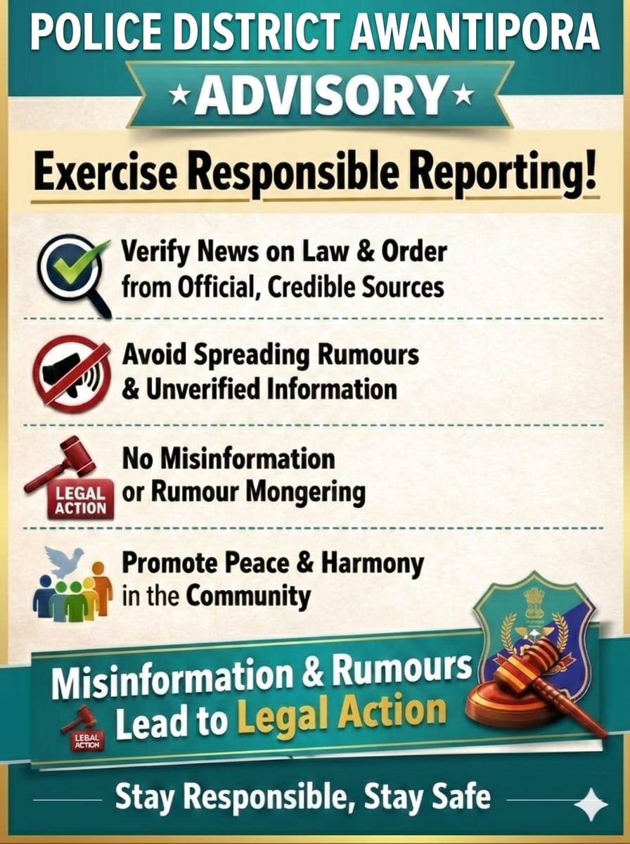 Police Awantipora reiterates its commitment to maintaining peace and urges citizens to remain vigilant and responsible.