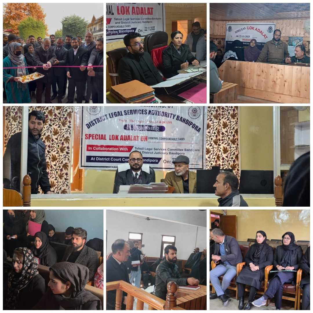 The District Legal Services Authority Bandipora expressed gratitude to the judicial officers, bench members, prosecution officials, Bar members, court staff and litigants for their cooperation in ensuring the smooth conduct of the Special Lok Adalat.