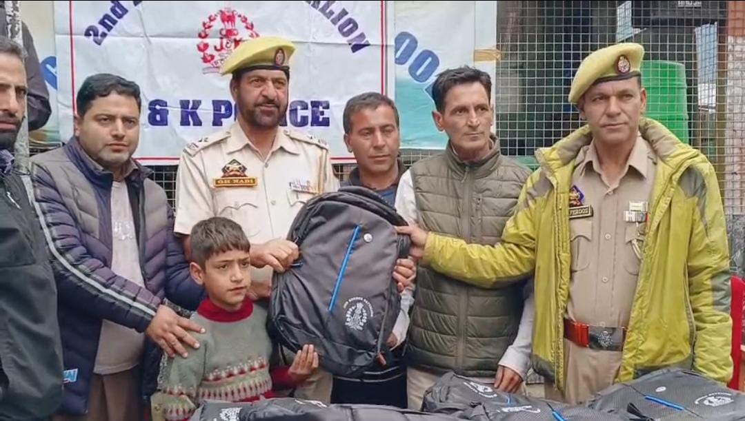Bandipora, Oct 3: In a historic outreach under the Civic Action Programme, the Jammu and Kashmir Police’s Second Border Battalion distributed school bags and stationery items to students at Government Middle School Tarbal, the last village along the Line of Control (LoC) in Gurez Valley, Bandipora district, on Friday.