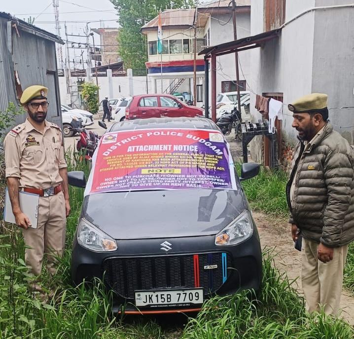 Budgam, April 24: In a significant step towards curbing drug trafficking under the ongoing Nasha Mukt Jammu & Kashmir Abhiyan, Budgam Police has attached movable property belonging to a notorious drug peddler, Aijaz Ahmad Sheikh son of Ghulam Nabi Sheikh, resident of Kanihama, Magam, under the provisions of Section 68F(1) of the NDPS Act.