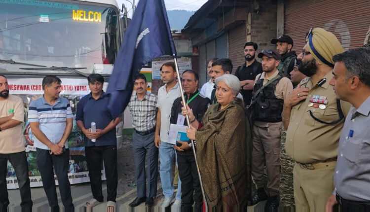 Bandipora, August 9: The Deputy Commissioner Bandipora, Indu Kanwal Chib, along with SSP Bandipora Harmeet Singh Mehta, on Saturday flagged off the procession of pilgrims to the Chota Amarnath Yatra. Pilgrims from different areas, including Kashmiri Pandits from Jammu and Kashmir Union Territory, participated in the event.