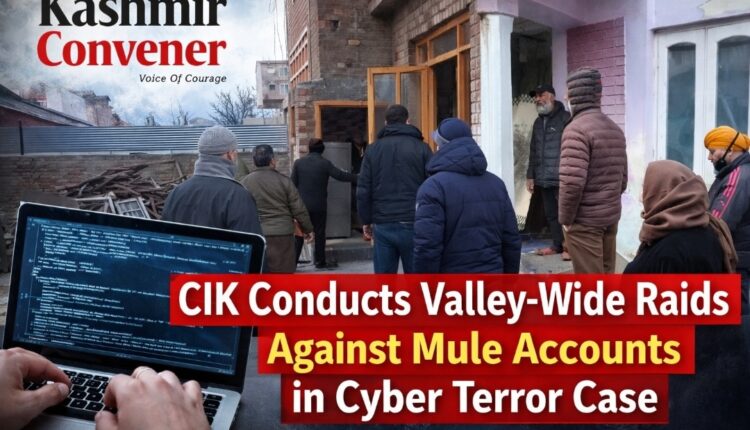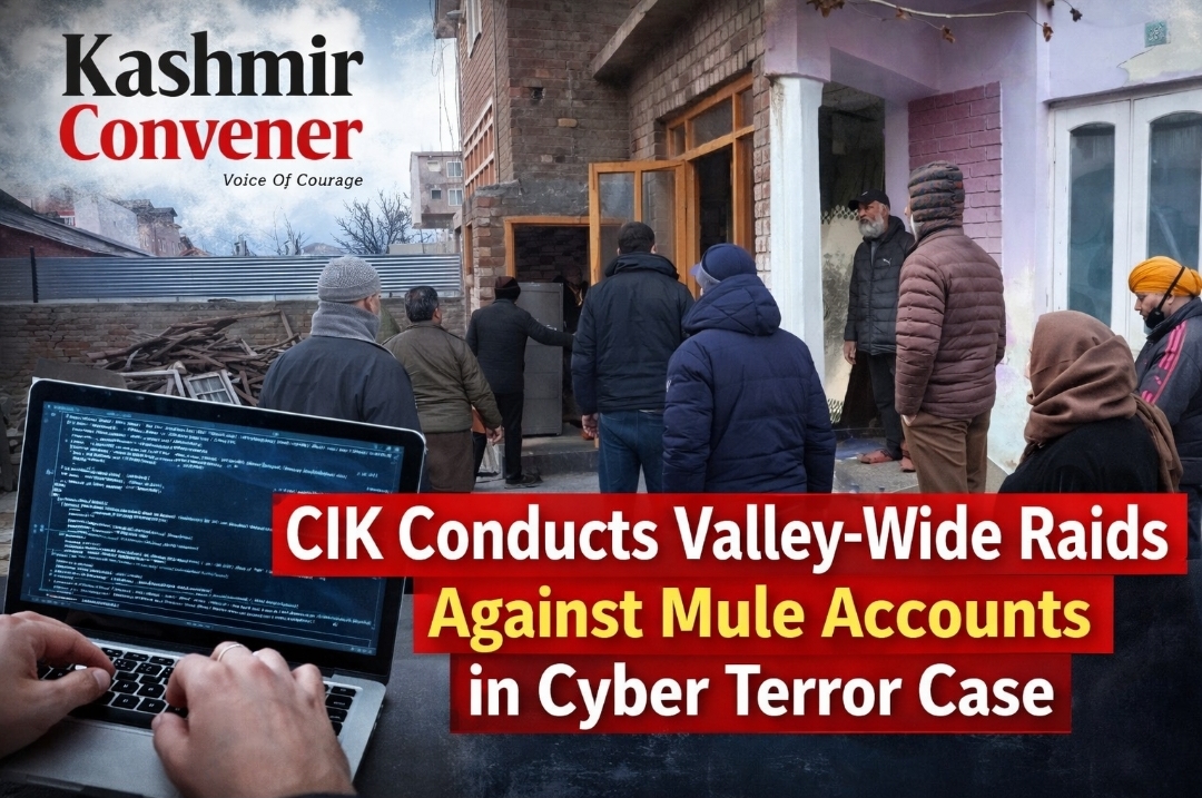 Srinagar, Jan 07: As part of an intensified probe into cyber terror activities, Counter Intelligence Kashmir (CIK) on Wednesday carried out coordinated raids at multiple locations across the Kashmir Valley, targeting suspected mule accounts, officials said.