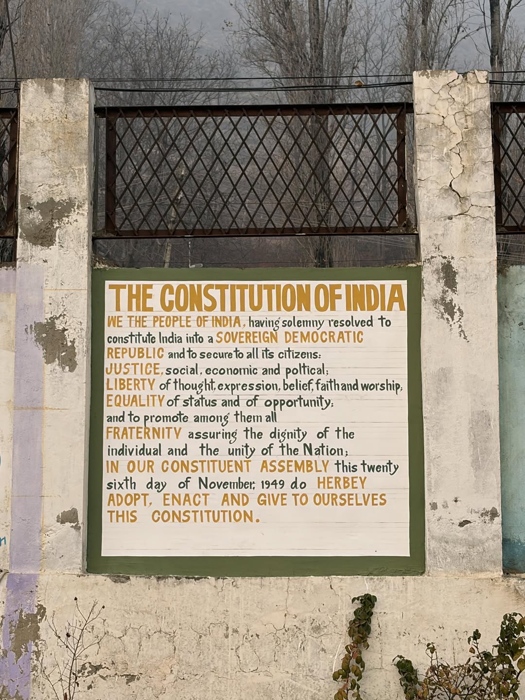 Srinagar, Dec 17: Bandipora district administration had to cut a sorry figure on social media after a wall-painted version of the Preamble to the Indian Constitution at the Mini Secretariat contained several typographical errors and missing ideals- “Socialist” and “Secular,” both integral to the Preamble itself.