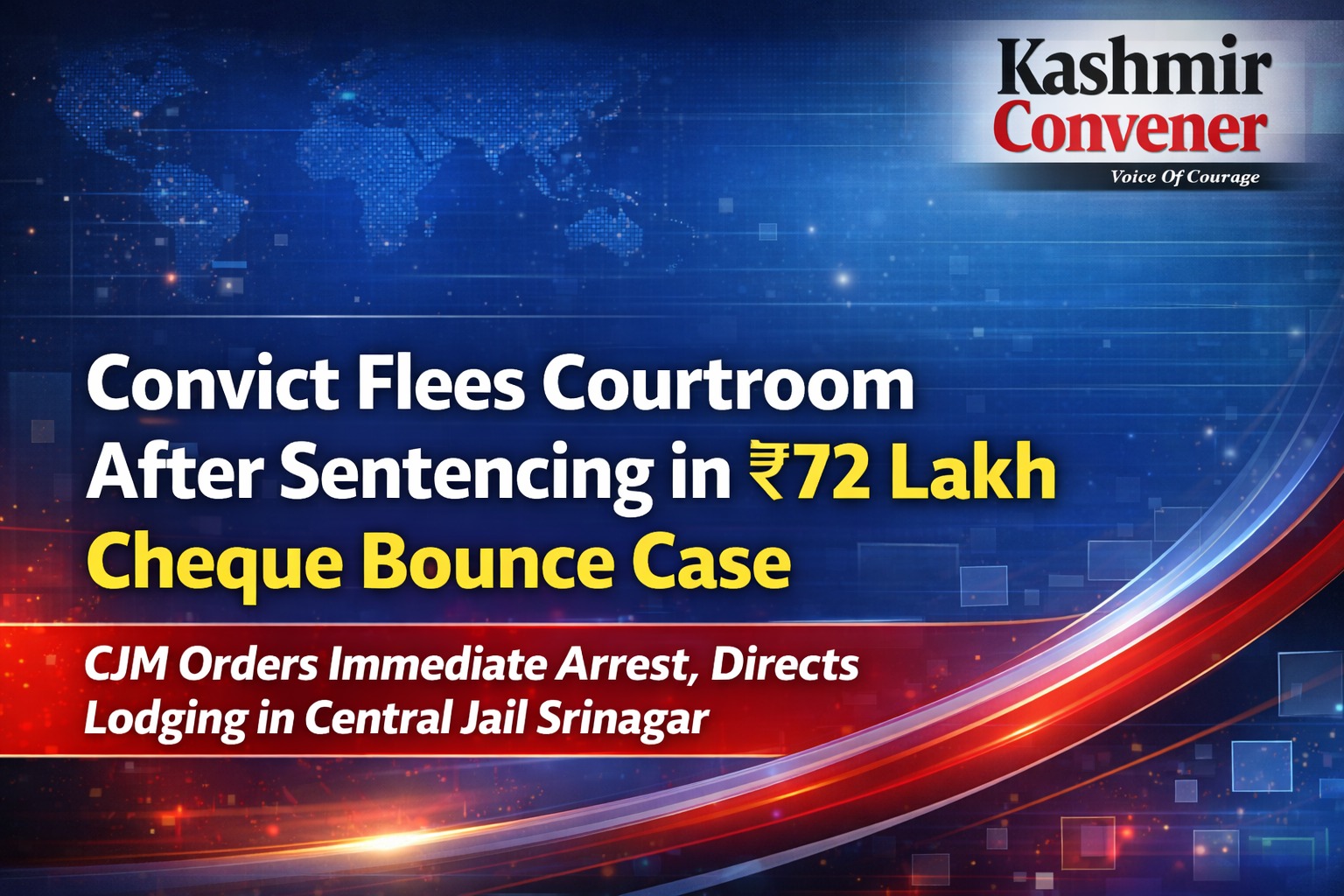 Srinagar, Feb 14: A man convicted in a high value cheque dishonour case fled from court premises immediately after sentencing, forcing the Chief Judicial Magistrate Srinagar to order his immediate arrest and confinement in Central Jail Srinagar.