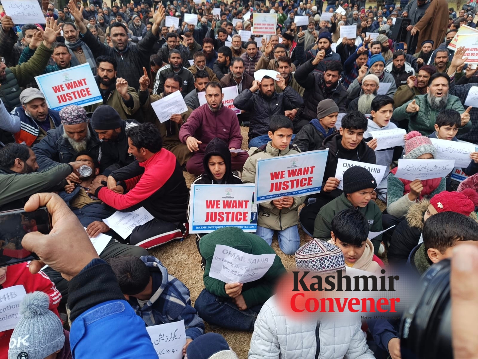 Srinagar, Feb 12: Daily wagers and casual labourers from various government departments on Thursday staged a protest at Sher-i-Kashmir Park in Srinagar, demanding immediate regularization of their services.