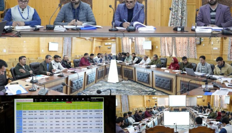 The meeting reviewed progress under Social Security Schemes, PMEGP, NRLM, PM Vishwakarma, PM Surya Ghar Muft Bijli Yojana, Mission YUVA, PMFME, various Kisan Credit Card categories, Artisan Credit Cards, and the performance of J&K Bank RSETI Bandipora.