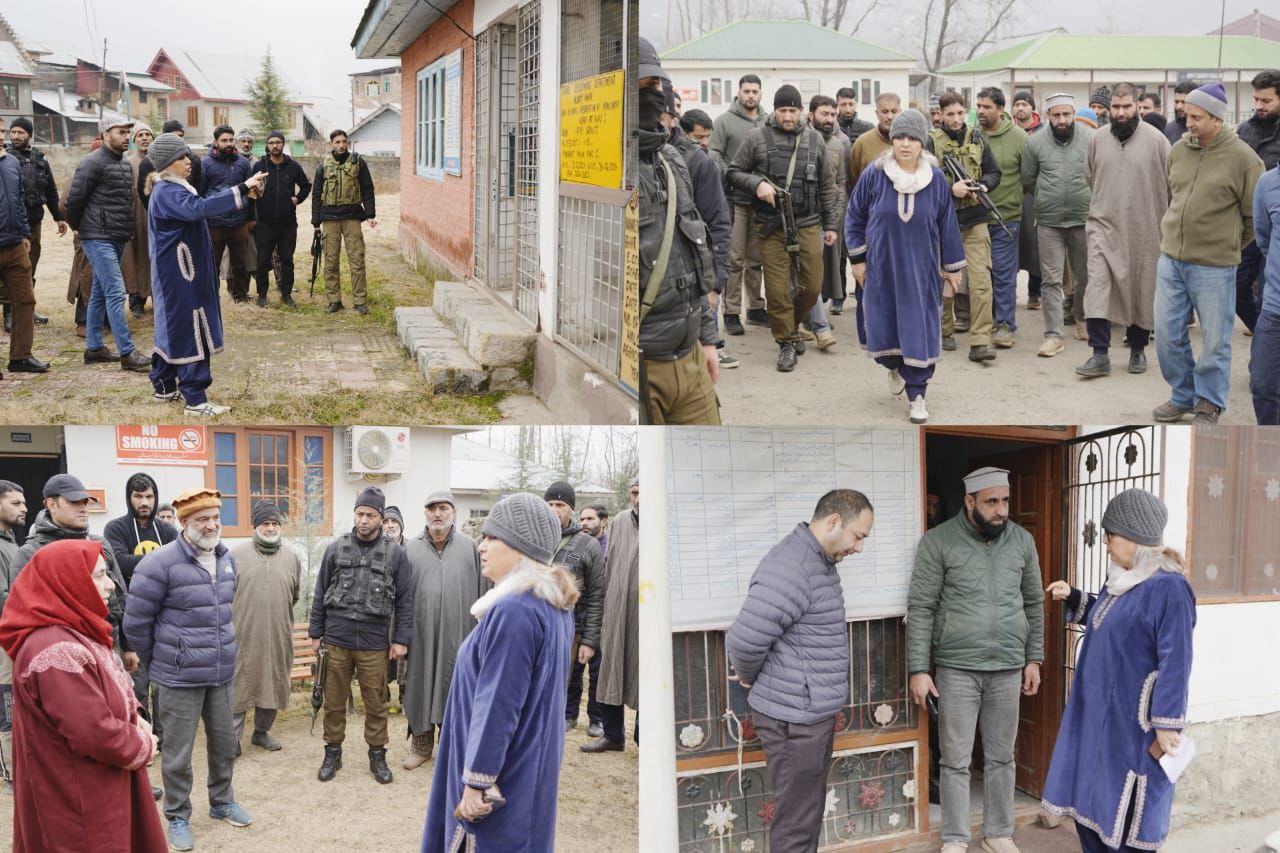 Bandipora, Jan 01 : The Deputy Commissioner Bandipora, Indu Kanwal Chib, conducted an extensive tour of Ajas Tehsil to review the functioning of government offices, inspect public facilities and listen to public grievances.