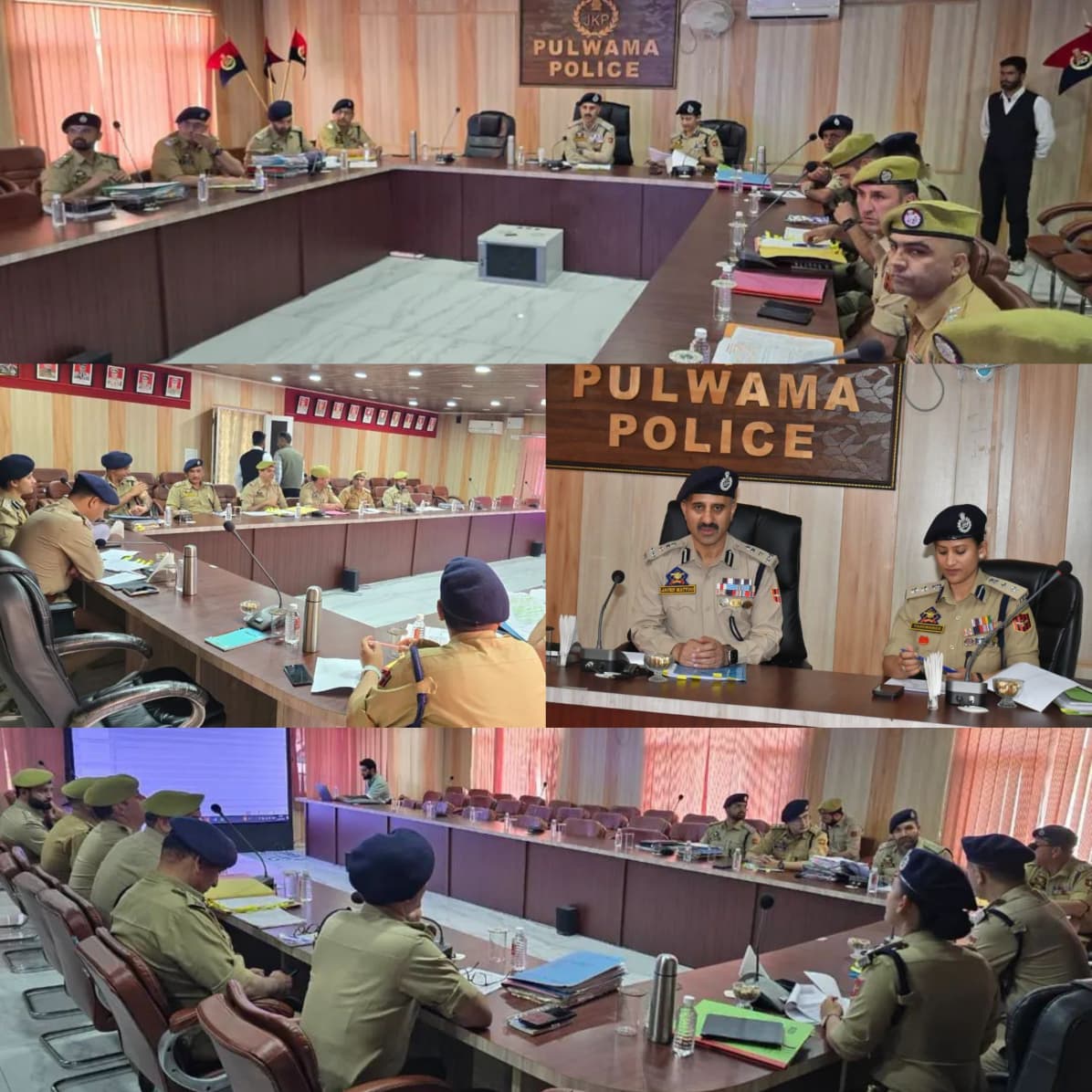 Deputy Inspector General of Police, South Kashmir Range, Javaid Iqbal Mattoo chaired the meeting at the District Police Lines, which was attended by SSP Pulwama Tanushree and other senior officers, including SHOs and investigating officers.