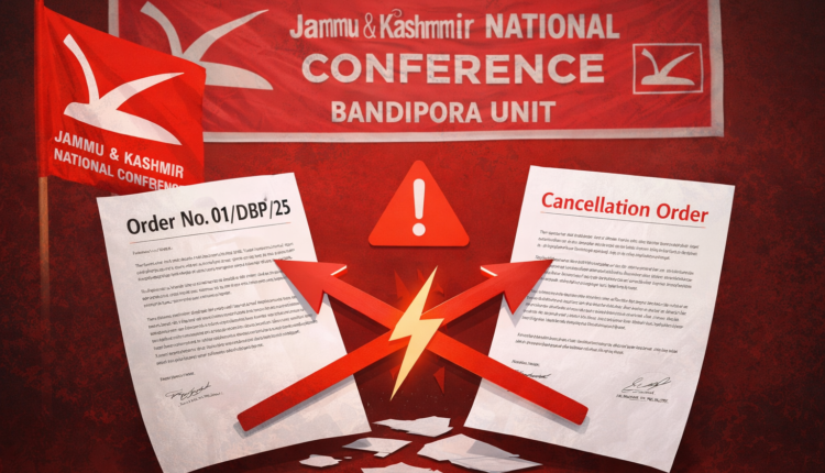 BANDIPORA, DEC 26 ; A serious internal rift has surfaced within the Bandipora unit of the Jammu and Kashmir National Conference (JKNC), marked by a series of contradictory official orders that point to deepening factionalism and procedural disarray.