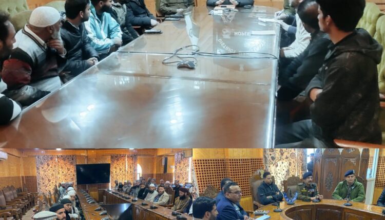 Shopian, March 3: A joint meeting was convened on Tuesday by the District Magistrate Shopian and the Senior Superintendent of Police (SSP) Shopian with civil society members and religious leaders in view of recent developments in the district.