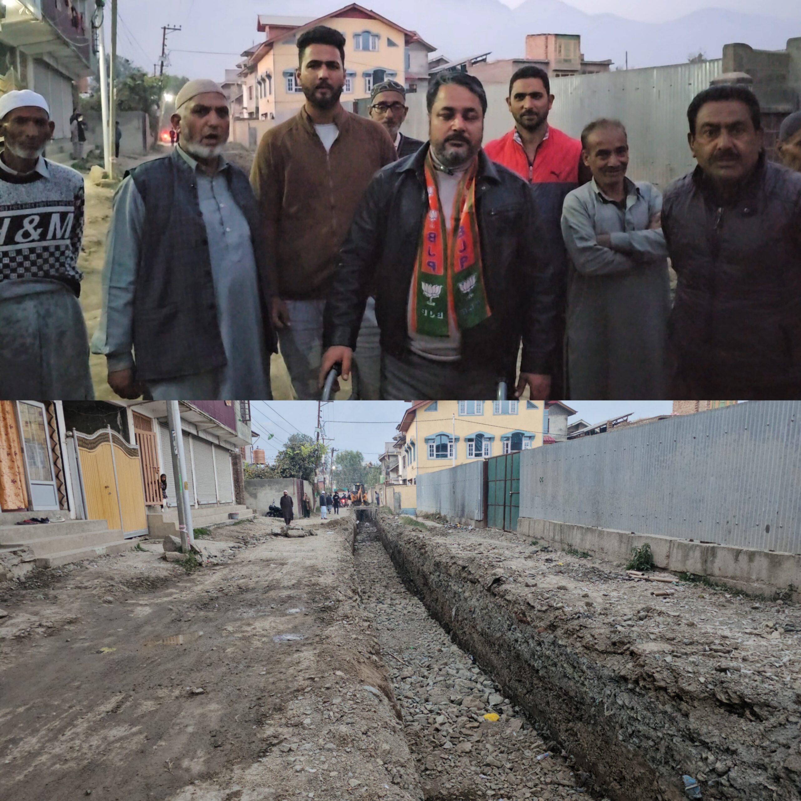 Pampore, October 21: In a major relief for the residents of Frestabal area of Pampore, BJP District General Secretary Pulwama, Mohammad Asif Ganaie, has initiated the construction of a much-awaited drainage system, addressing one of the area’s long-standing civic issues.