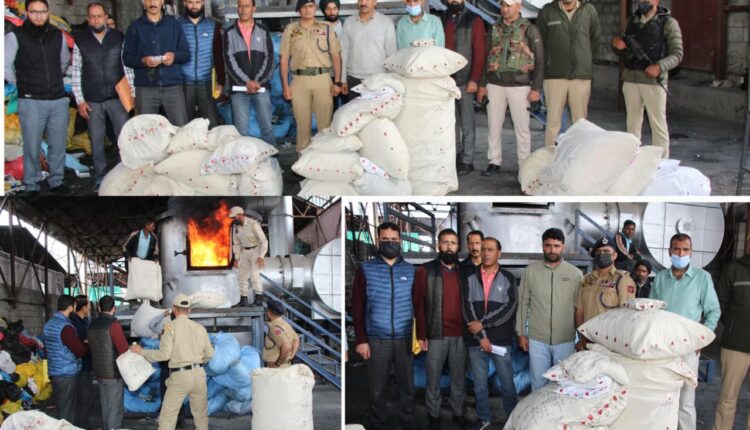 SHOPIAN, April 30: In compliance with the orders of the Hon’ble District Court Shopian and in accordance with the provisions of Section 52A of the NDPS Act, the Drug Disposal Committee Shopian destroyed a huge quantity of seized contraband substances.