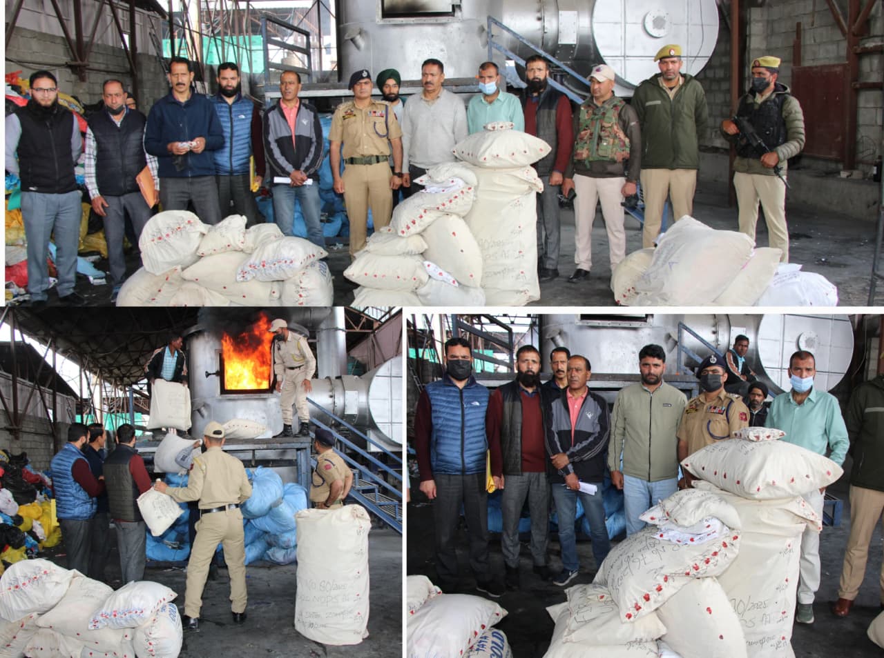 The destruction was carried out at IGC Kashmir Health Care System Lassipora, under strict adherence to legal protocols and environmental safety standards. The contraband substances destroyed were seized in 26 different NDPS FIRs of Police Station Shopian, Zainapora, Heerpora, Imamsahib and Keller. The items destroyed included Charas 64.719 Kgs, Poppy Straw 56.126 Kgs, Cannabis 34.761 Kgs, Bhung 20.745 Kgs, Ganja 4.118 Kgs and Heroin 10 grams. The process was duly photographed and videographed for official record.