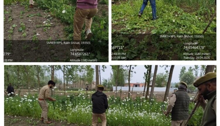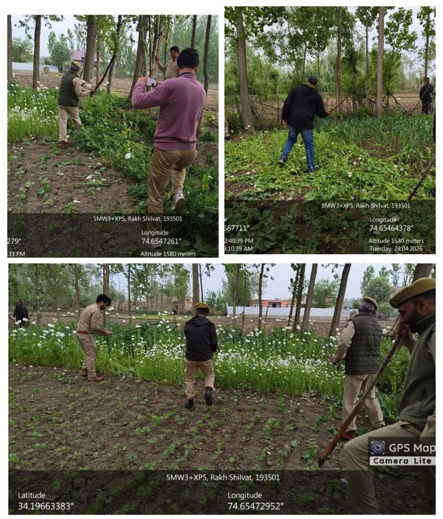 Bandipora, April 28: In a significant crackdown on illegal narcotics activities, the Excise Department Bandipora, in coordination with the Police, Agriculture, and Revenue Departments, carried out a successful joint operation to destroy illicit poppy cultivation in the Rakhe Shivat area of Sumbal in Bandipora district.