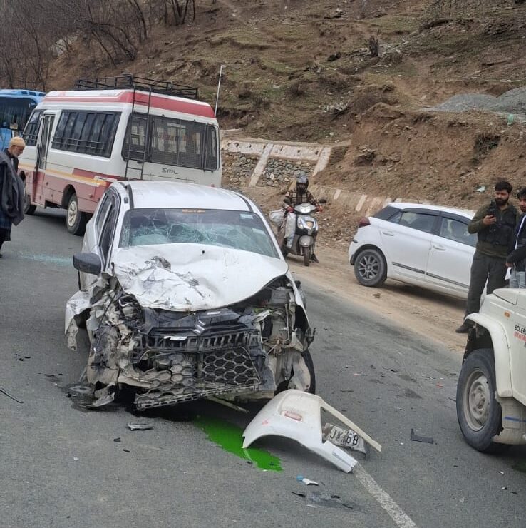 Ganderbal, March 26: Five persons, including two tourists from Maharashtra, were injured in a road accident at Rail Gund in Kangan area of central Kashmir’s Ganderbal district on Thursday, with one of the injured drivers reported to be in critical condition, officials said.