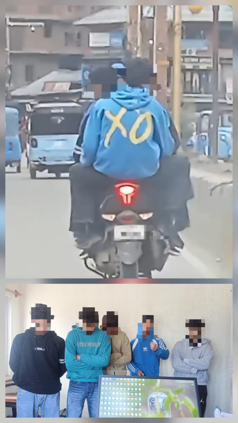 According to officials, a complaint was received that a scooty bearing registration number JK03M-8619 was seen moving around the Lal Chowk area of Anantnag with four persons onboard, none wearing helmets.