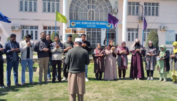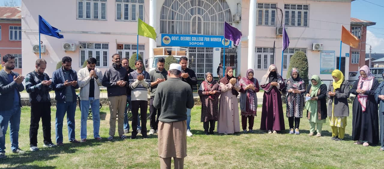 Sopore, March 27: Government Degree College for Women on Friday organised a condolence meeting to mourn the untimely demise of Dr Tabassum Naz, Assistant Professor of Zoology at Government Degree College Poonch, who passed away in a tragic road accident on March 26.