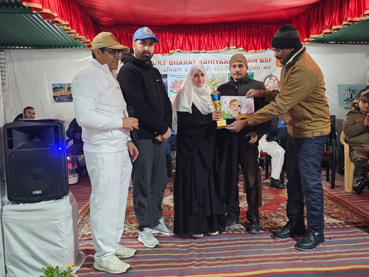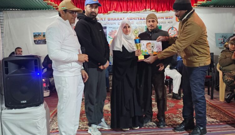 Samreen Mir, a Class 9 student of the school, won the first prize for her impactful and meaningful painting. She was felicitated with a trophy by senior officials of the Border Security Force.
