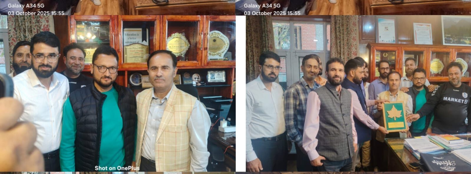 Srinagar, Oct 3: A delegation of General Line Teachers, led by Gowhar Ahmad Bhat, Friday called on Director General School Education Kashmir Dr GN Itoo in his office chamber to felicitate him on his recent promotion as Director General of the department.