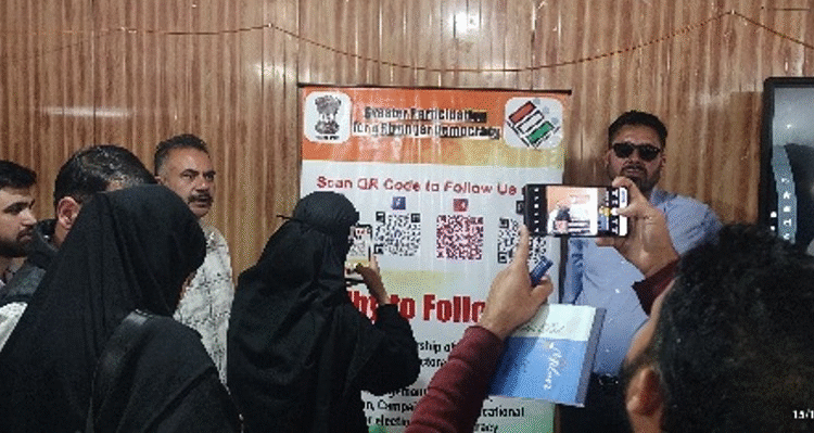 The main address was delivered by Mohammad Iqbal Samoon, District Level Management Team (DLMT) Bandipora, who elaborated on the Election Commission of India’s initiatives to increase voter participation. He provided a detailed explanation of the voter registration process, especially targeting newly eligible voters, and demonstrated the use of QR codes as a simple and effective tool to facilitate registration and encourage maximum electoral participation.