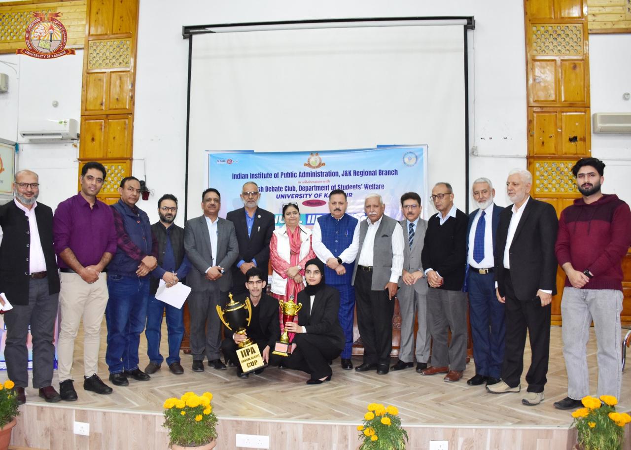 Each participant was given five minutes to speak and two minutes were provided for the audience to make rebuttal to the main theme of the debater. After several rounds of articulate and spirited arguments, Ms. Gazifah Mohsin from SKUAST-K, Saaquib from the Department of Law, and Syed Alizah from the Department of Anthropology emerged as winners, receiving trophies and cash prizes. The Department of Law, University of Kashmir, lifted the prestigious IIPA Trophy, with Saaquib and Noha being declared as the Best Team.
