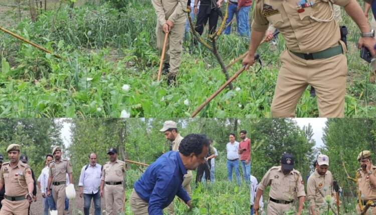 Bandipora, April 27: A joint team of the Police, Revenue, Agriculture and Excise departments destroyed illegally cultivated poppy crops during an anti-narcotics operation in the Hajin area of Bandipora district as part of the ongoing Nasha Mukt Abhiyan.