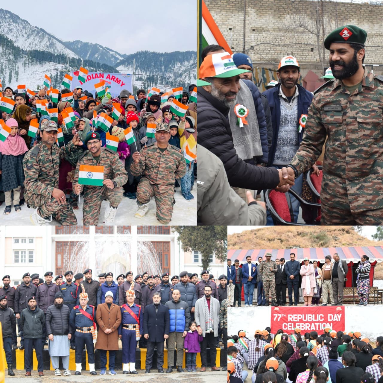 At Ramban, the Indian Army celebrated the 77th Republic Day with great enthusiasm at a snow-covered post in Teh Khari, District Ramban, reaffirming its strong bond with the local community. Despite the challenging weather conditions, children, students, teachers and local residents gathered to take part in the celebrations, making the occasion truly memorable.