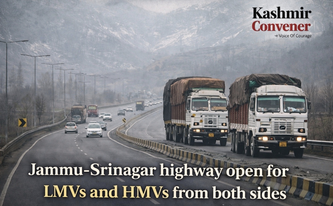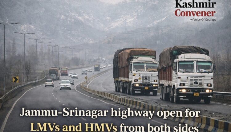 Srinagar, Jan 09: The Jammu–Srinagar national highway remained open on Friday for vehicular traffic from both sides, with both light motor vehicles and heavy motor vehicles allowed to ply, officials said.