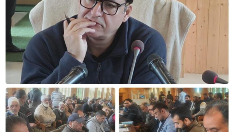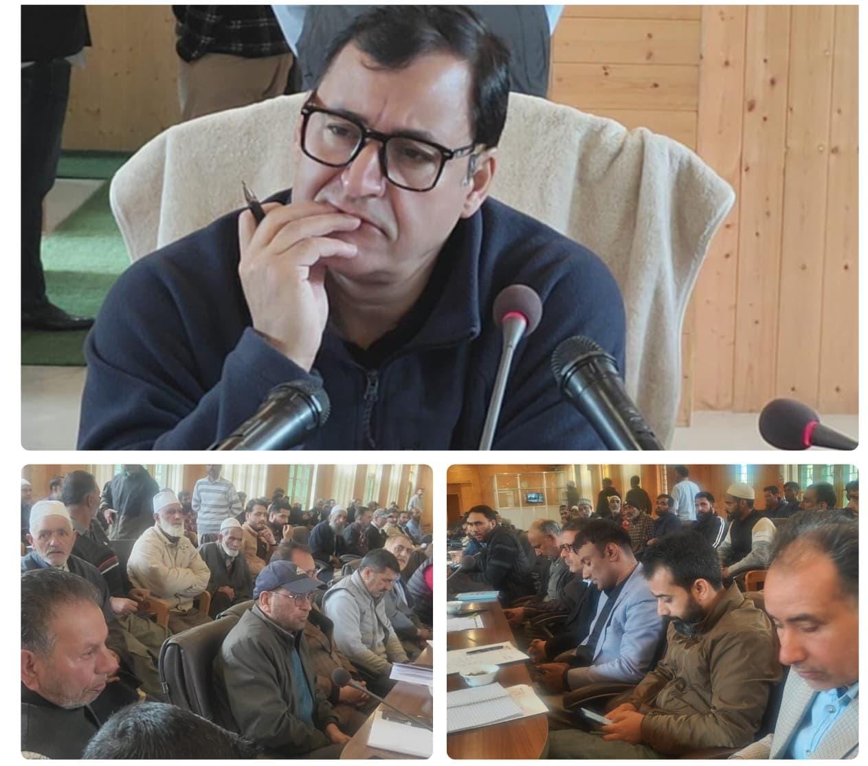 BARAMULLA, APRIL 11: Minister for Agriculture Production, Rural Development and Panchayati Raj, Cooperative and Election Department, Javid Ahmad Dar today chaired a comprehensive review meeting at Dak Bungalow, Rafiabad here to assess the status of irrigation facilities and ongoing developmental works in the area.