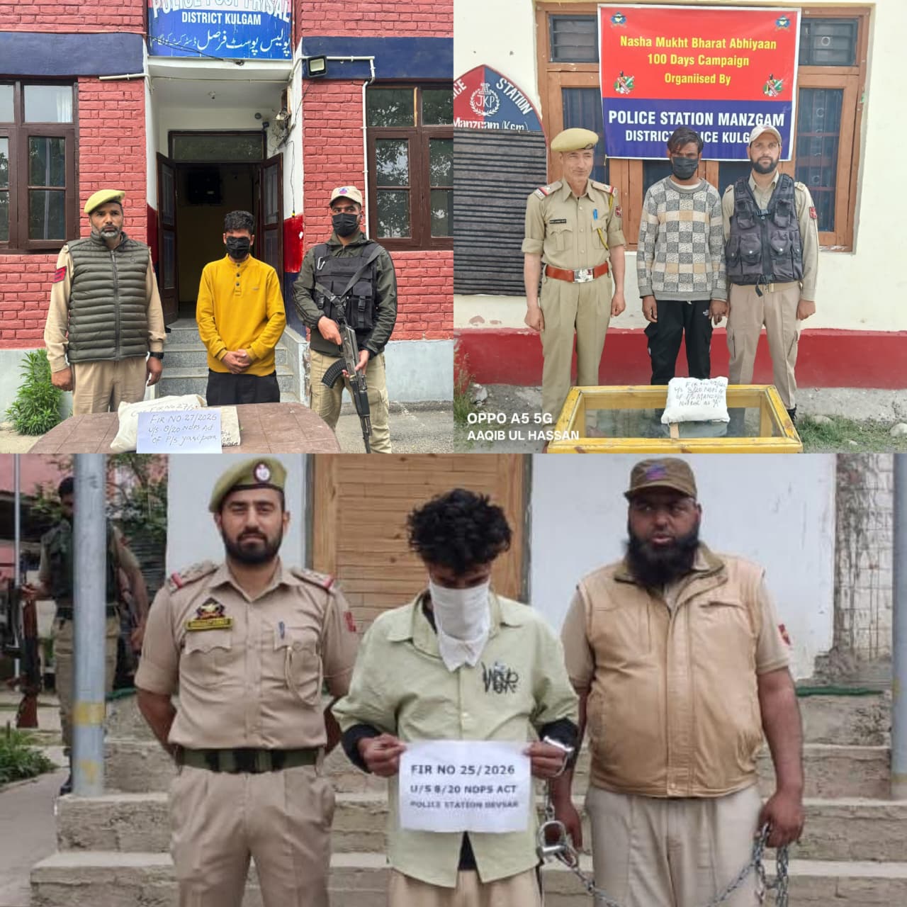 Accordingly, FIR No. 100/2026, 104/2026 under Section 8/21 NDPS Act at Police Station Qazigund. FIR No. 05/2026 U/S 8/20 NDPS act at PS Manzgam, FIR No 25/2026 U/S 8/20 NDPS act at Devsar & FIR No 27/2026 U/S 8/20 NDPS act at PS Yaripora stands registered and Further investigation is underway in all cases to unearth forward and backward linkages involved in the narcotics network.