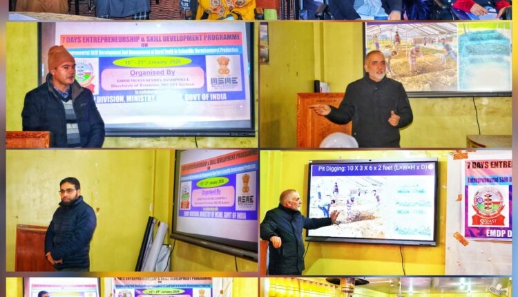Bandipora, Jan 15: A week-long Entrepreneurship & Skill Development Programme (ESDP) on “Entrepreneurial Skill Development and Management of Rural Youth in Scientific Vermicompost Production” commenced at KVK Bandipora-1 on Thursday.