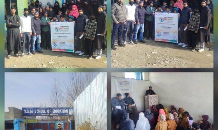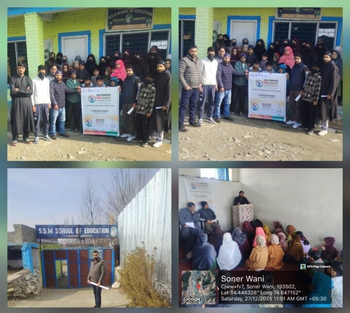 Bandipora, Dec 27 : Under the aegis of Mission Vatsalya, District Bandipora today organized an awareness programme on the theme “Child Marriage Free Bharat” at SSM School of Education, Sonarwani, Bandipora.