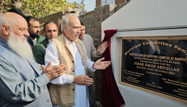 Speaking to Kashmir Convener, MLA Pampore, Retired Justice Hasnain Masoodi, stated that a multi-crore shopping complex project was initiated in Pampore, with its foundation stone e-inaugurated by then Chief Minister Omar Abdullah, recognizing the significance of this Saffron town.