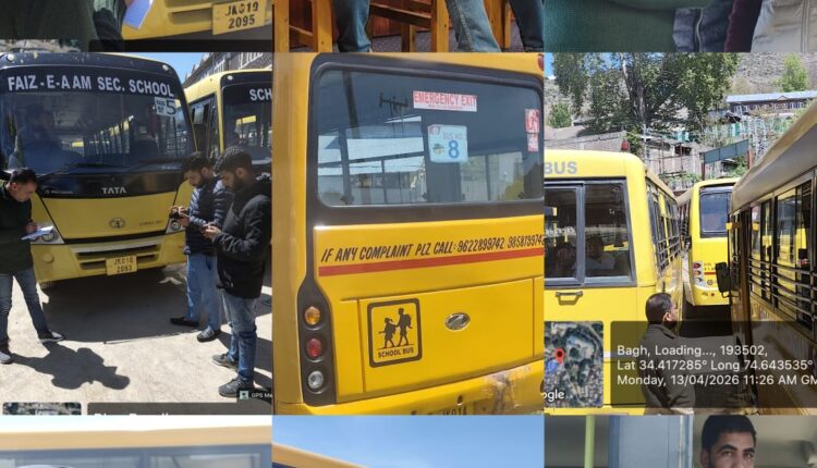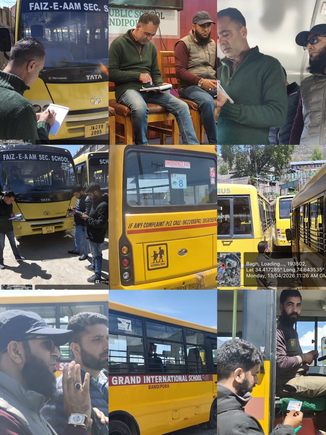 BANDIPORA, APRIL 13: On the directions of the Deputy Commissioner Bandipora, the Motor Vehicles Department (MVD) today conducted a comprehensive enforcement and inspection drive across the district to ensure safety, compliance and roadworthiness of school buses.