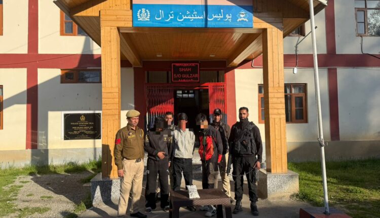 The apprehended individuals have been identified as Asim Ahmad, son of Zaffar Ahmad Bhat, resident of Batmaloo, Uzan Farooq, son of Farooq Ahmad Khan, resident of Tengpora and Farhan Rashid, son of Abdul Rashid Shigar, resident of Batmaloo.