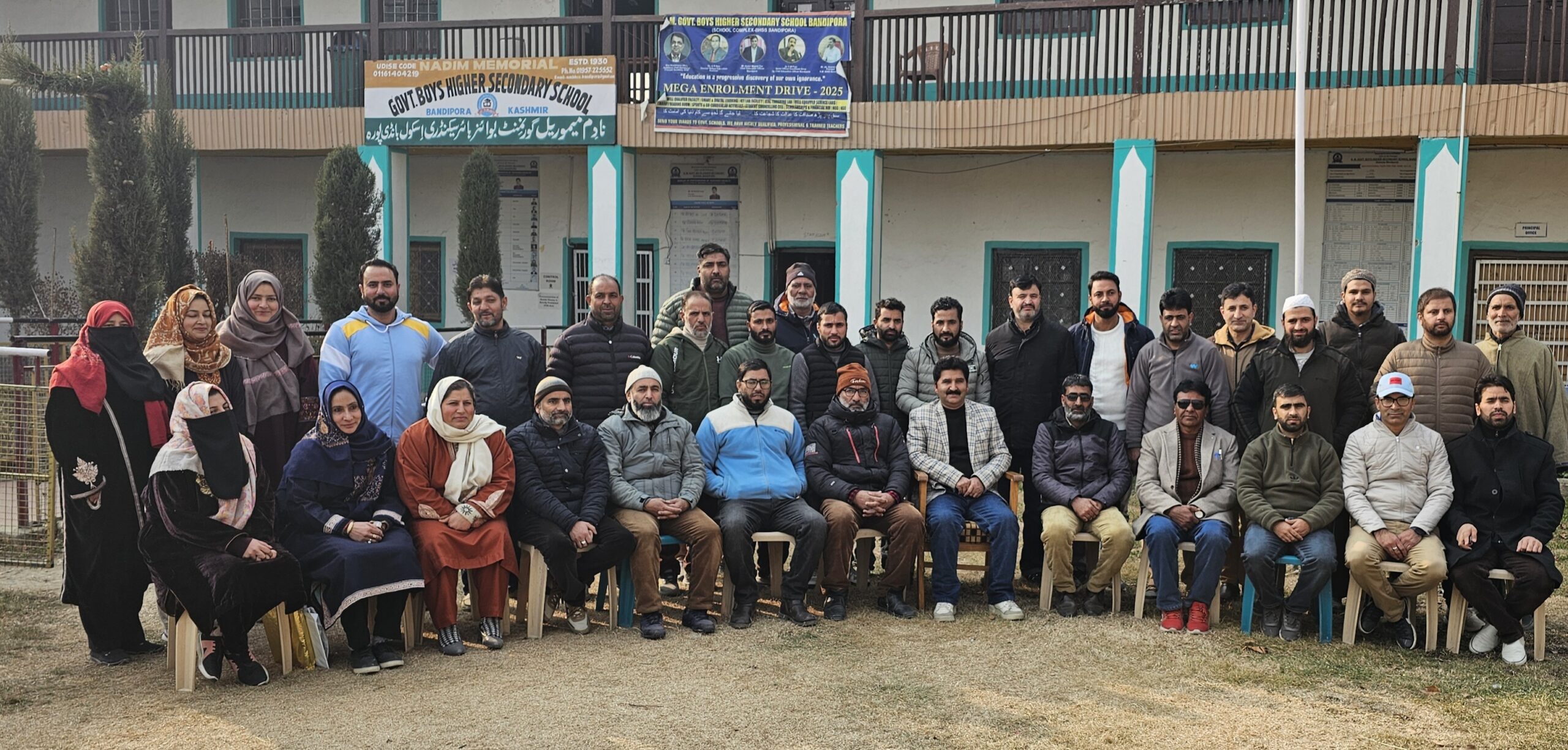 Bandipora, Dec 5: In a heartfelt moment at Govt Nadim Memorial Boys Higher Secondary School, all staff members gathered to bid an emotional farewell to the outgoing Principal, who has been transferred to Higher Secondary School Nihalpora, Pattan.