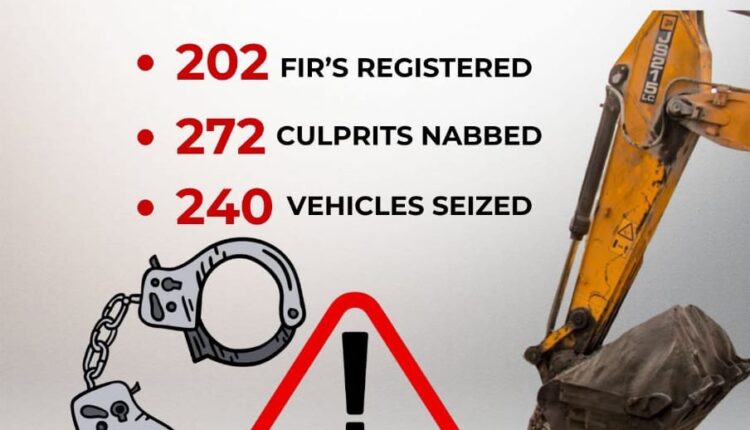 According to official figures, authorities registered 202 First Information Reports (FIRs), arrested 272 individuals, and seized 240 vehicles in 2025.