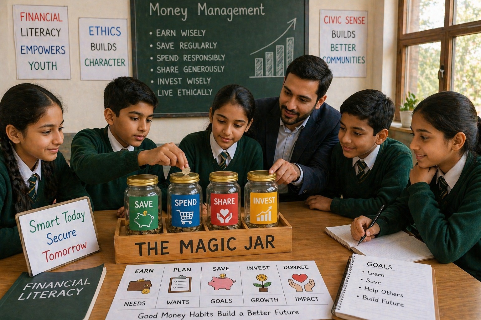 The Magic Jar (both a learning tool and a miniature model of life, teaching financial skills, foresight, and ethical thinking in a practical, hands-on way) offers a tangible, experiential tool to bridge this divide, translating abstract financial principles into concrete, reflective practice. By dividing resources into compartments for saving, spending, sharing, and investing, children observe consequences of their choices in real time, cultivating foresight, self-regulation, ethical reflection, and emotional resilience. This exercise strengthens delayed gratification, prioritization, strategic planning, and empathy, demonstrating that financial literacy is inseparable from emotional intelligence, civic awareness, and moral reasoning.