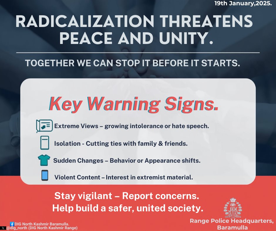 In a statement circulated on the social media platform X, DIG Maqsood-ul-Zamaan as per Kashmir Convener stressed the urgent need for community cooperation to detect and counter extremist influences at their earliest stages.