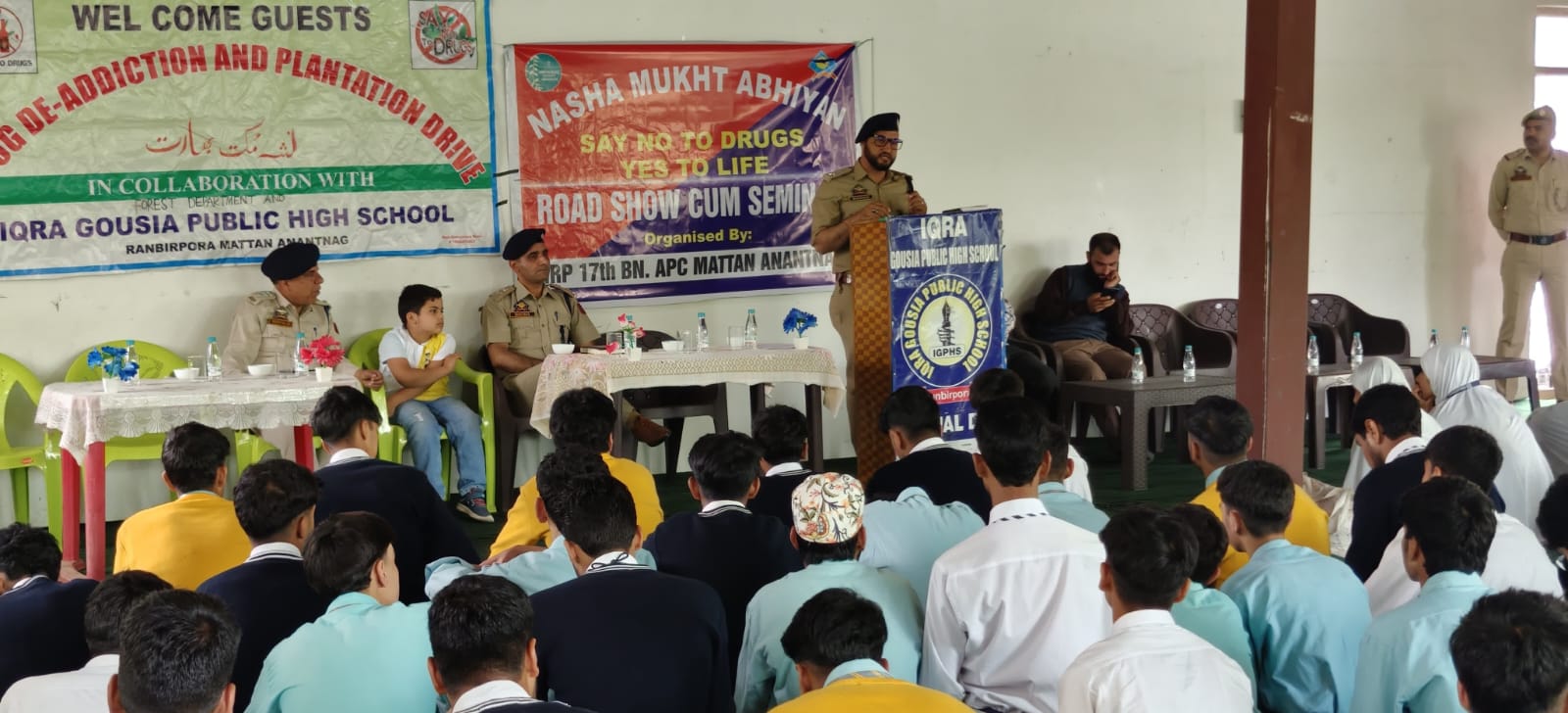 MATTAN (ANANTNAG), APRIL 25: A seminar-cum-road show on “Nasha Mukht Abhiyan” was organised on Saturday at Iqra Gousia Public High School in Kehribal, aimed at spreading awareness against drug abuse among youth.