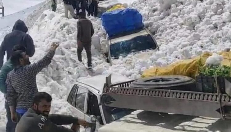 Zojila, March 27: A snow avalanche struck near Zero Point at Zojila Pass on Friday, trapping several passenger vehicles under snow and blocking the strategic road, officials said.