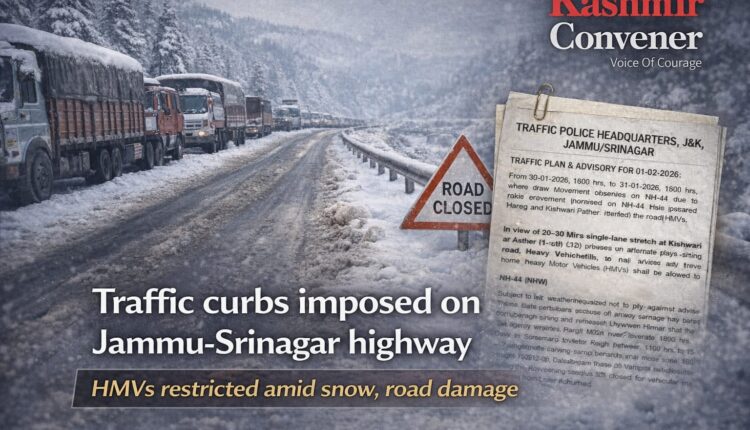 Traffic curbs imposed on Jammu Srinagar highway, HMVs restricted amid snow and road damage