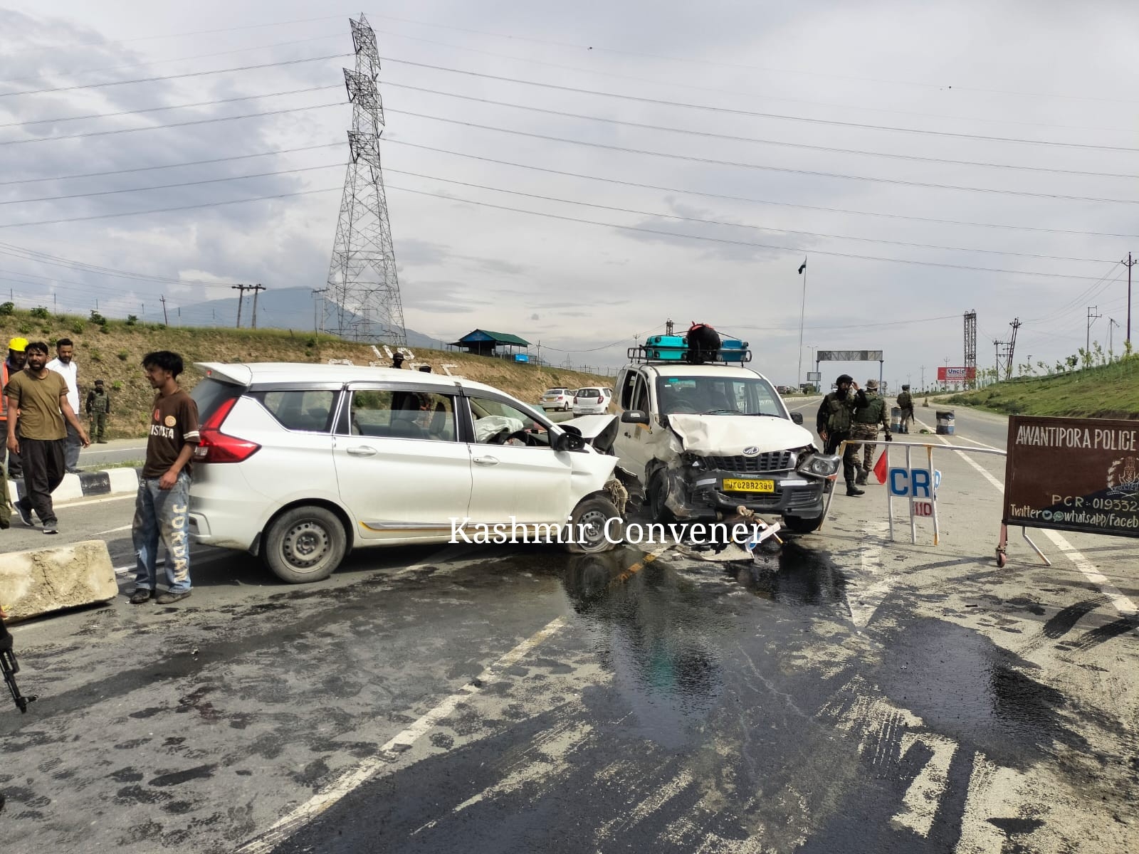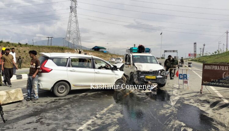 Pampore, April 27: Two tourists among four persons were injured in a road accident that took place on Srinagar-Jammu National Highway near Galander area of Pampore involving two vehicles—an Ertiga bearing registration number JK08P-3882 and a Xylo bearing registration number JK02BB-2390, Officials told Kashmir Convener.