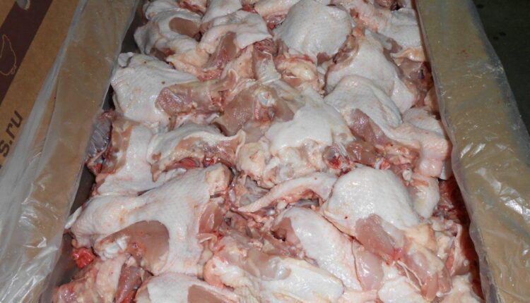 Officials said the frozen chicken had been transported from Delhi and was intercepted during an inspection drive conducted by the Food Safety Department in the district.
