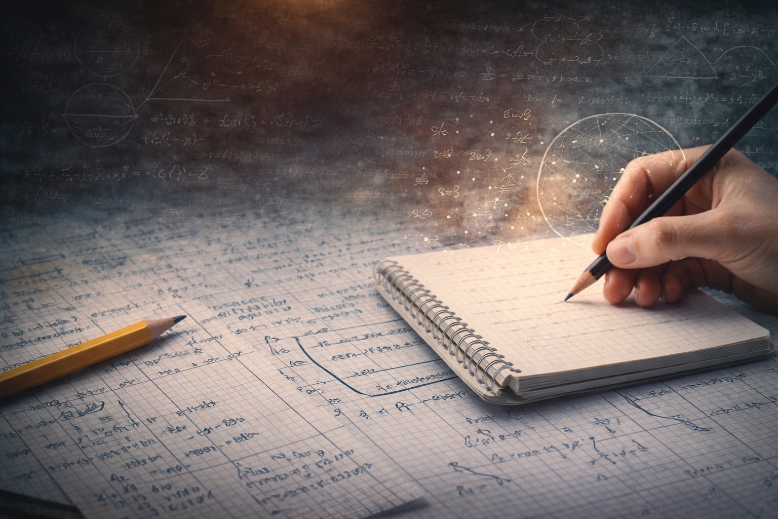 A simple notebook can open doors to infinite structures—prime numbers stretching endlessly, geometric patterns unfolding symmetrically, equations mapping the movement of stars.
